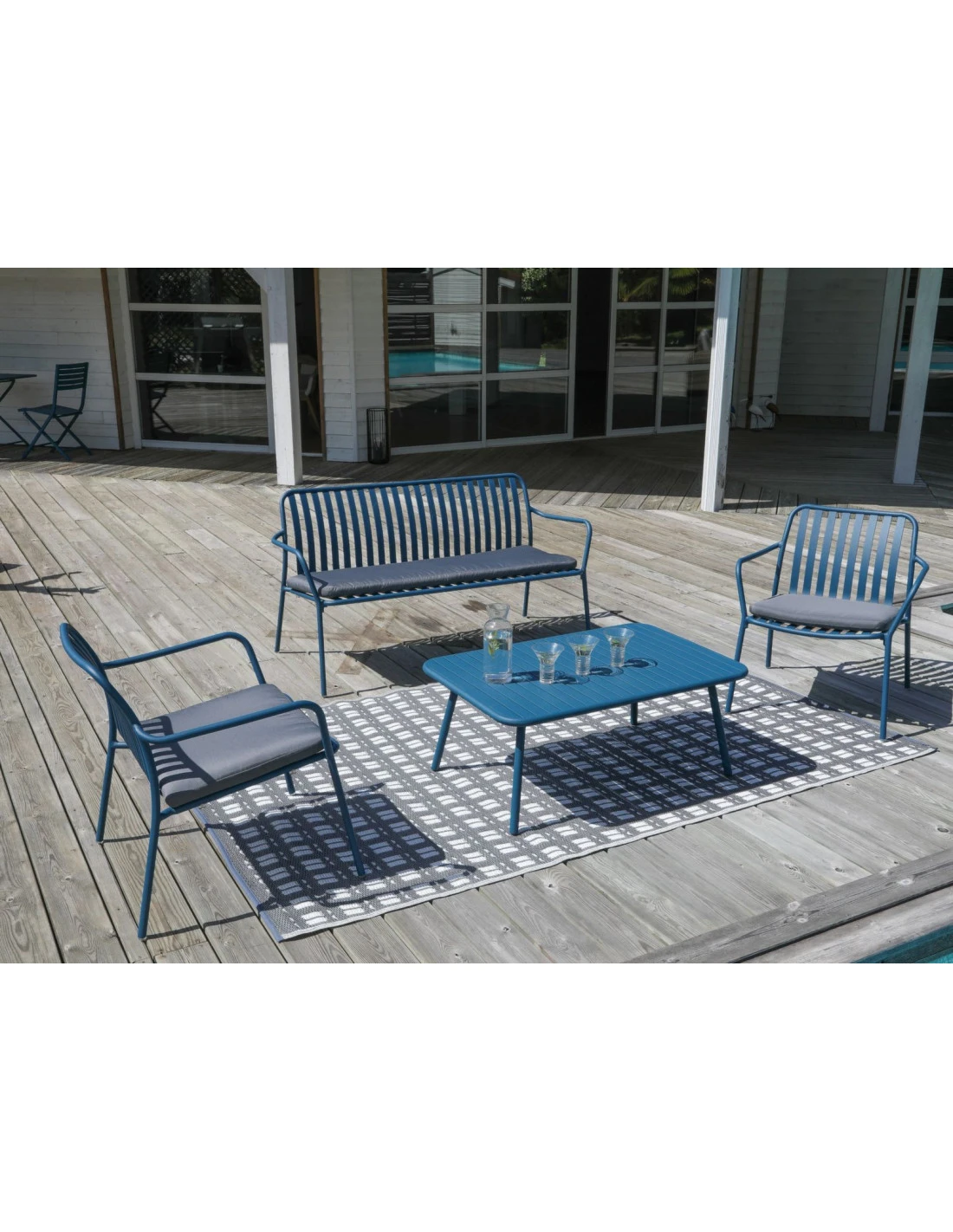 Détendez vous dans ce salon de jardin couleur bleu !